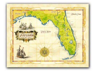 Gorgeous 19.5 x 25 inch framable antique-looking map of the state of Florida. Shows major cities and towns including the Florida Keys. Printed on beautiful Frenchtone Parchment paper.