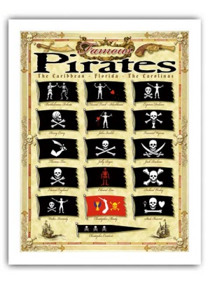 Beautiful 8 x 6.25 inch framable antique-looking map color map of famous Pirates' flags. Including Edward England, Jolly Roger, Edward Teach (Blackbeard), and more! Printed on heavy stock.